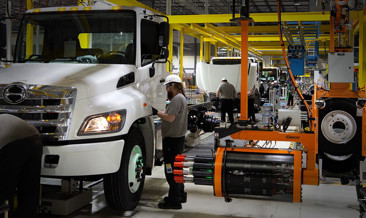 Hino Motors Manufacturing in Williamstown, West Virginia produces all Class 6-7 conventional Hino Trucks for the U.S. market. Comprising 6 Models ranging from 23,000GVW through 33,000 GVW, the plant seamlessly delivers 'to spec' vehicles with custom paint all under one roof.